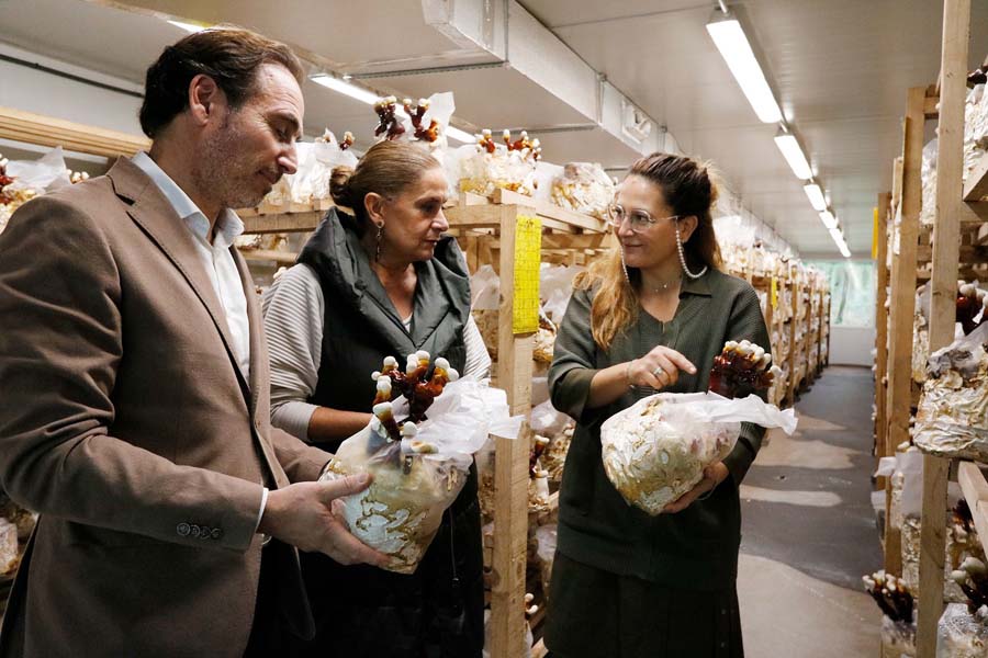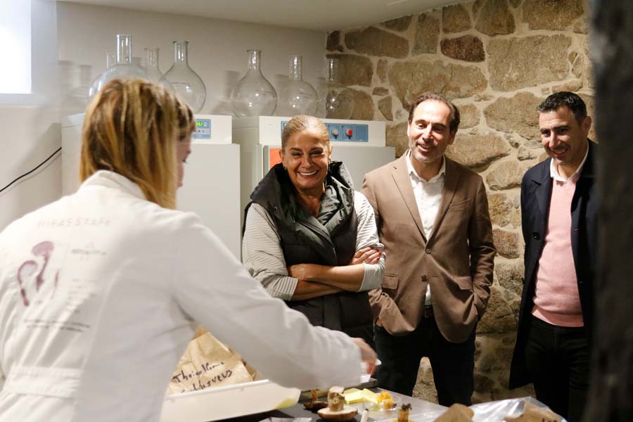 “Síntome moi orgullosa de ver que esta provincia conta con empresas moi internacionalizadas, deste altísimo nivel de innovación e investigación” asegurou Carmela Silva na súa visita a Hifas da Terra, na que estivo acompañada polo deputado provincial Manuel González. A presidenta foi recibida por Catalina Fernández, CEO e fundadora de Hifas da Terra, e Esteban Sinde, director de I+D+i, que explicaron con paixón as múltiples propiedades terapéuticos dos fungos e os proxectos nos que a empresa participa e a están situando como mundial líder en micoterapia.