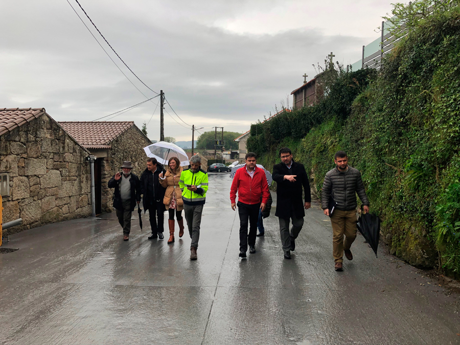 Avanzan a bo ritmo as obras que a Deputación de Pontevedra está a acometer en Meaño nos núcleos de Broullón (Xil) e Aldea de Abaixo (Covas) no marco da mellora da mobilidade sostible e segura na EP-9302. Trátase dunha actuación valorada en 376.000 € dos que a institución provincial achega o 70% –263.000 €– e o Concello o 30% restante –113.000 €– para dotar esta infraestrutura de zonas de convivencia que permitan unha maior seguridade no tránsito peonil. O deputado de Infraestruturas, Gregorio Agís, a deputada Raquel Giráldez e o alcalde de Meaño, Carlos Viéitez, achegáronse hoxe ata Covas para supervisar os traballos practicamente rematados xa no treito de Aldea de Abaixo e moi avanzados tamén na parte de Broullón.
