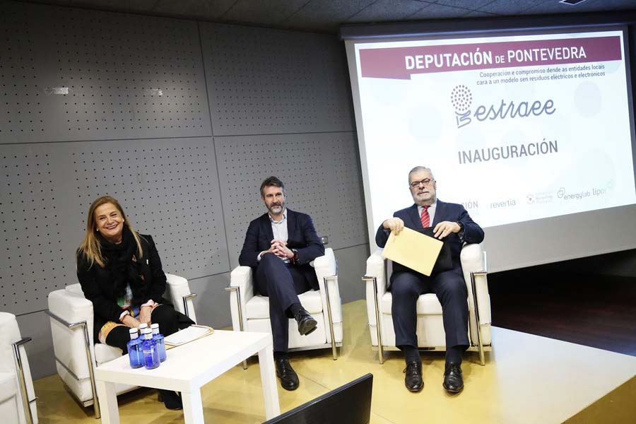 “Somos a referencia en Galicia e no Estado en tratamento de residuos de aparellos eléctricos e electrónicos. Somos a provincia do medio ambiente”. Así de contundente se mostrou a presidenta da Deputación de Pontevedra, Carmela Silva, na inauguración hoxe da xornada celebrada en Vilagarcía de conclusións do proxecto europeo de Estratexia Sostible Transfronteiriza para a Xestión dos Residuos de Aparellos Eléctricos e Electrónicos (ESTRAEE), que a Deputación lidera desde 2018, xunto a socios de España e Portugal. ESTRAEE, que contou cun financiamento de 2,15 millóns de euros, procedentes do FEDER nun 75% do Programa de Cooperación Transfronteiriza entre España e Portugal (POCTEP), tiña como obxectivo mellorar a xestión e recollida de residuos eléctricos e electrónicos, así como impulsar a xeración de emprego, pois, en palabras da presidenta, é “fundamental que xeremos actividade económica vinculada ao tratamento do medio ambiente; pero tamén a innovación, a especialización e o desenvolvemento tecnolóxico nun espazo tan fermoso como é o fronteirizo entre o norte de Portugal e o sur de Galicia”.