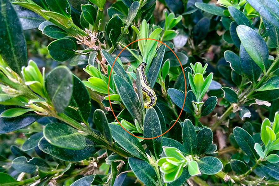 O centro dependente da Deputación sinala que a climatoloxía case primaveral destes días adiantou a saída da hibernación das eirugas da “Cydalima perspectalis” polo que suxire revisar as plantas