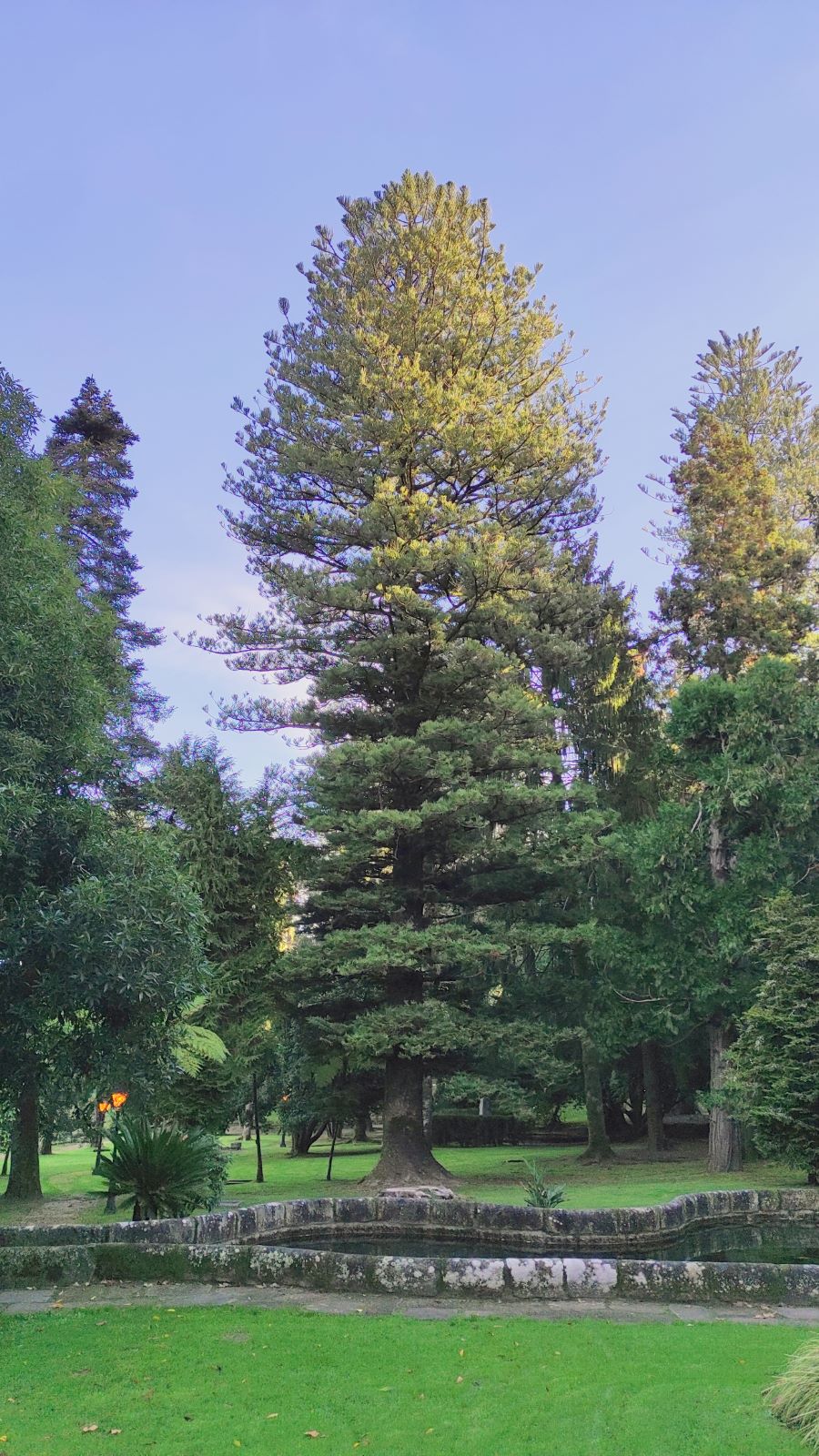 Son dos ejemplares de arquitectura impecable, con el característico porte monopódico y con la típica ramificación horizontal verticilada que forma plataformas o pisos, de donde le viene el otro nombre común de la especie: pino de pisos.