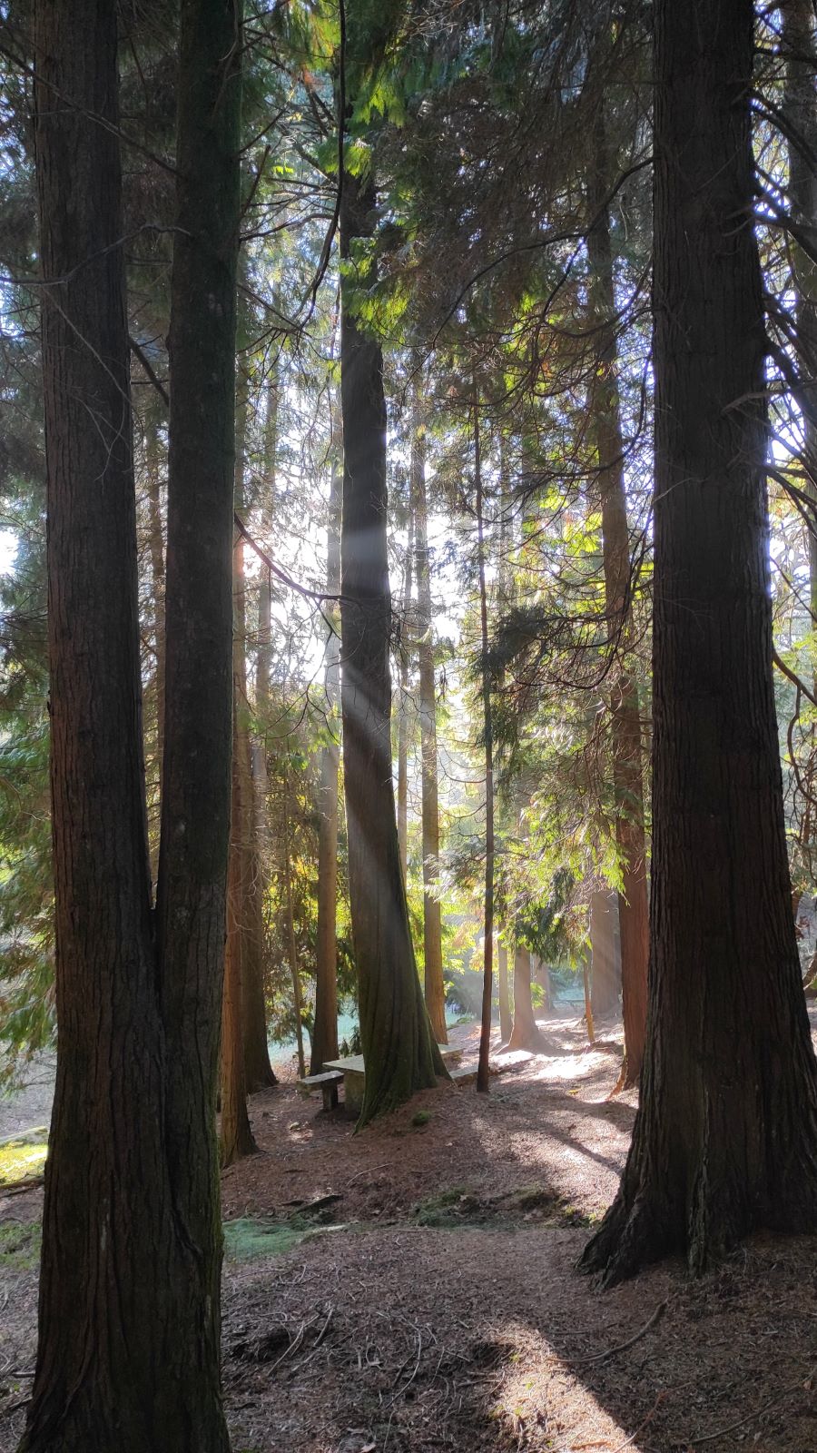 En el Parque Natural Monte Aloia podemos contemplar un hermoso conjunto de ejemplares formado por unos cien individuos, aproximadamente. Se encuentran en una fuerte pendiente, por lo que las bases de los troncos de una gran parte de los ejemplares están torcidas y giran para dirigirse en busca de la escasa luz que penetra entre las copas de sus congéneres. Las copas son irregulares y poco frondosas por la gran competencia de espacio a la que están sometidos.