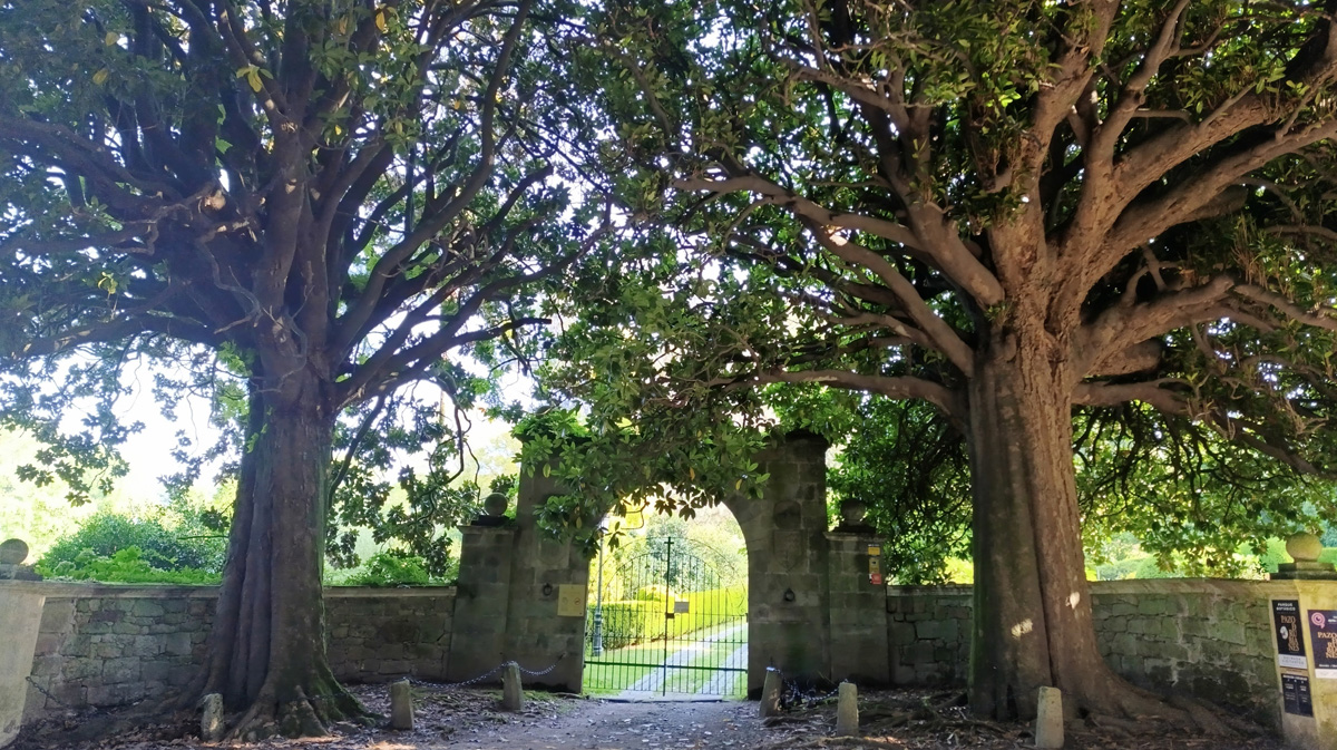 En la entrada principal del pazo de Rubianes, flanqueando con solemnidad el acceso a la finca, se alza una imponente pareja de magnolias que da la bienvenida a las y los visitantes e introduce, con elegancia, la valiosa colección de plantas ornamentales que conforman el jardín histórico. En este entorno cuidadosamente diseñado, donde cada especie parece ocupar un lugar pensado con sensibilidad y propósito, estas magnolias aportan una nota exótica y destacan por la forma globosa de sus copas y la textura brillante de su follaje perenne.