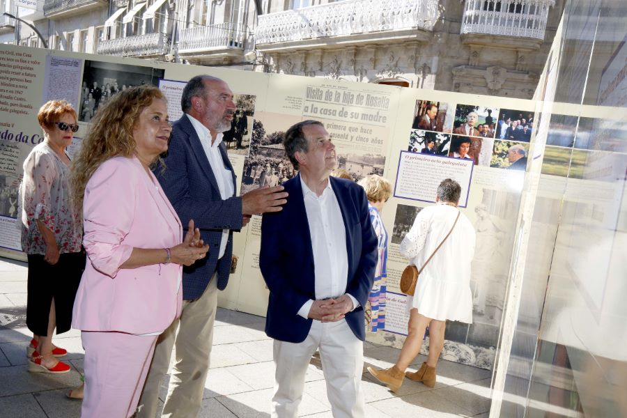 A Deputación de Pontevedra vén de inaugurar esta tarde na Farola de Urzáiz, en Vigo, a exposición "A casa de Galicia. 50 anos da Casa de Rosalía", comisariada por Pepe Barro, unha "imprescindible" mostra no espazo exterior que ata o 20 de xullo permitirá á cidadanía viguesa realizar un percorrido pola historia do museo rosaliano e lembrar o fito que supuxo en pleno franquismo conseguir mercar, restaurar e musealizar a casa da universal escritora grazas á colaboración de milleiros de persoas. O tiro de saída á mostra, presidida por Carmela Silva e o alcalde de Vigo, Abel Caballero, completouse despois na sede viguesa da Deputación cunha conferencia a cargo de Anxo Angueira, presidente da Fundación Rosalía, e cun concerto de Su Garrido con pezas de temática rosaliana.