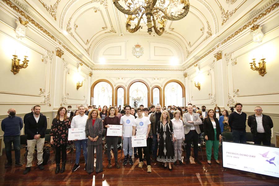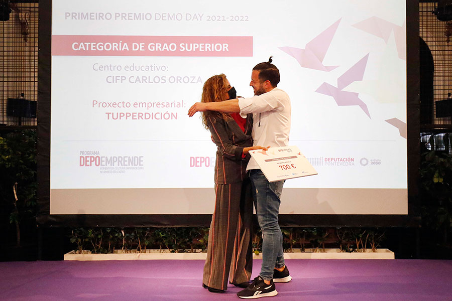 “Todos os proxectos son gañadores e extraordinarios porque apostan por un novo mundo no que están presentes valores como o produto de proximidade, respecto ao medio ambiente, sostibilidade ou innovación”. Con estas palabras gabou a presidenta da Deputación a todas as iniciativas que participaron na sexta edición de “Depoemprende na FP” que celebrou hoxe o seu demoday cunha exposición das propostas máis destacadas na que non faltaron os nervios propios do momento, os aplausos do público ou as apertas e festexos ao coñecerse as e os gañadores. Na xornada, celebrada no Salón de Plenos do Pazo Provincial, alumnas e alumnos de 8 centros da provincia -Vigo (3), Pontevedra (3), Bueu (1) e Cangas (1)- presentaron os 14 proxectos elixidos polos centros para participar neste certame no que se repartiron 1.900 euros en premios.