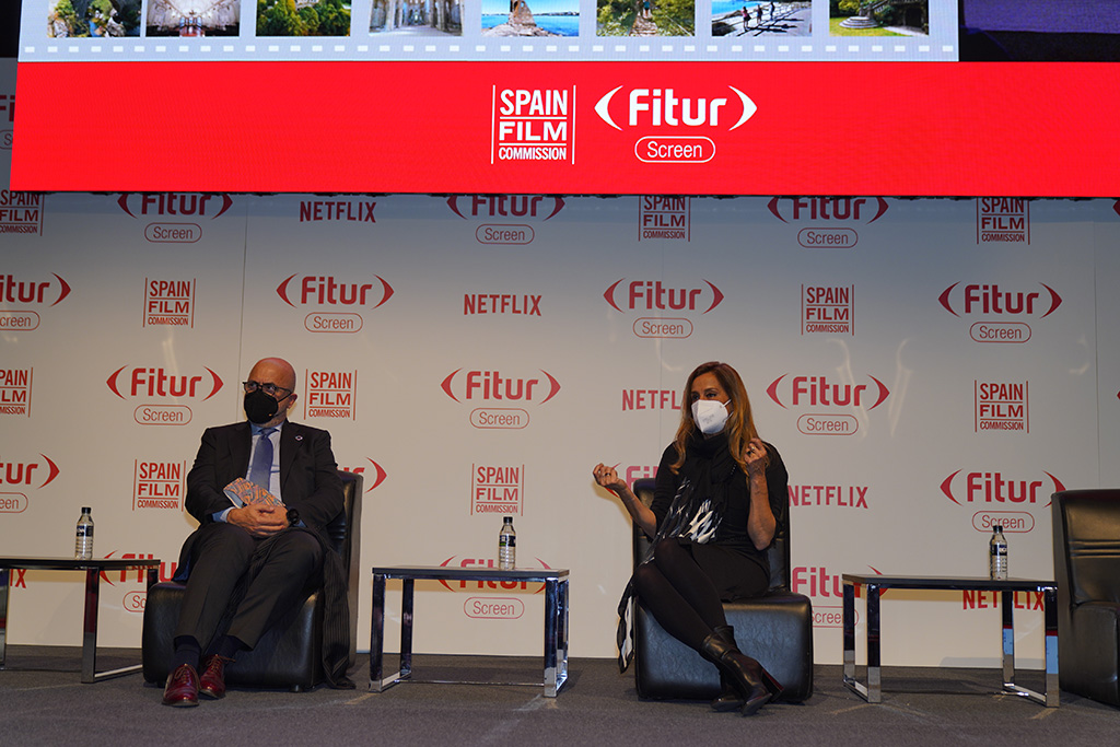 Carmela Silva e o presidente da Spain Film, Carlos Rosado, formalizaron hoxe en FITUR a adhesión que converte a Pontevedra na primeira provincia en Galicia que entra na rede de traballo cara ao futuro Hub audiovisual de España