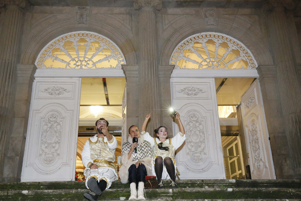 Da man de “seres máxicos” interactuando co público a través do espectáculo de mimo, maxia, música e circo “Lux” e cunha chocolatada final, a presidenta da Deputación Carmela Silva premeu o “botón” de acendido do alumeado de Nadal das sedes e dos edificios da institución en Pontevedra nun acto non que non faltou a tradicional conta atras. O Pazo Provincial conta dende este serán con milleiros de luces led e un vestíbulo decorado a modo de “entrañable escena invernal”, cunha cabana de madeira, á que se pode acceder, e un lugar habilitado para tomar fotografías baixo as letras retroiluminadas de “Bo Nadal”. “A xente –asegurou Carmela Silva-merece ser feliz e queremos espallar sorrisos e construír espazos para vivir experiencias a carón da felicidade”.