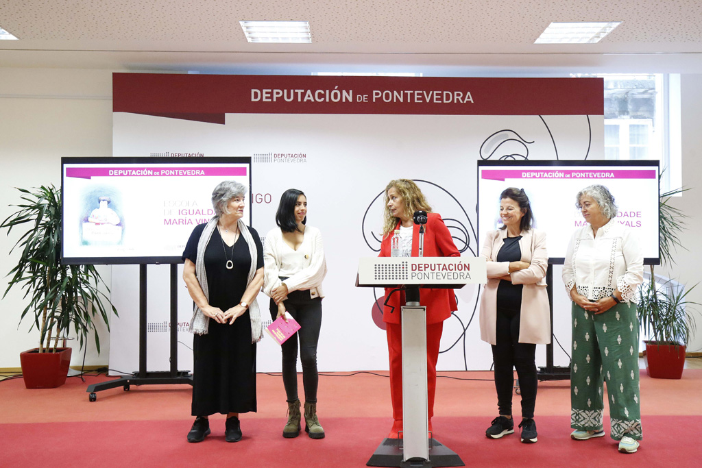A Escola María Vinyals da Deputación afronta este último trimestre do ano con dúas novas accións formativas, neste caso centradas na nova andaina da “Canteira de Igualdade” para seguir sumando entre a mocidade axentes do cambio feministas, e a segunda edición do curso en liña coordinado por Rosa Cobo sobre os “Debates teóricos e a Axenda Política Feminista”. A presidenta provincial, Carmela Silva, acompañada das promotoras da Canteira de Igualdade, Priscila Retamozo, Mercedes Chis Oliveira, Amada Traba e Luisa Abad, presentou hoxe estas iniciativas coas que a Deputación, subliñou, “segue a poñer a igualdade no centro de todas as súas políticas como a máxima prioridade; seguramente esta administración provincial sexa unha das principais do Estado que máis discurso ofrece para loitar contra a desigualdade”.