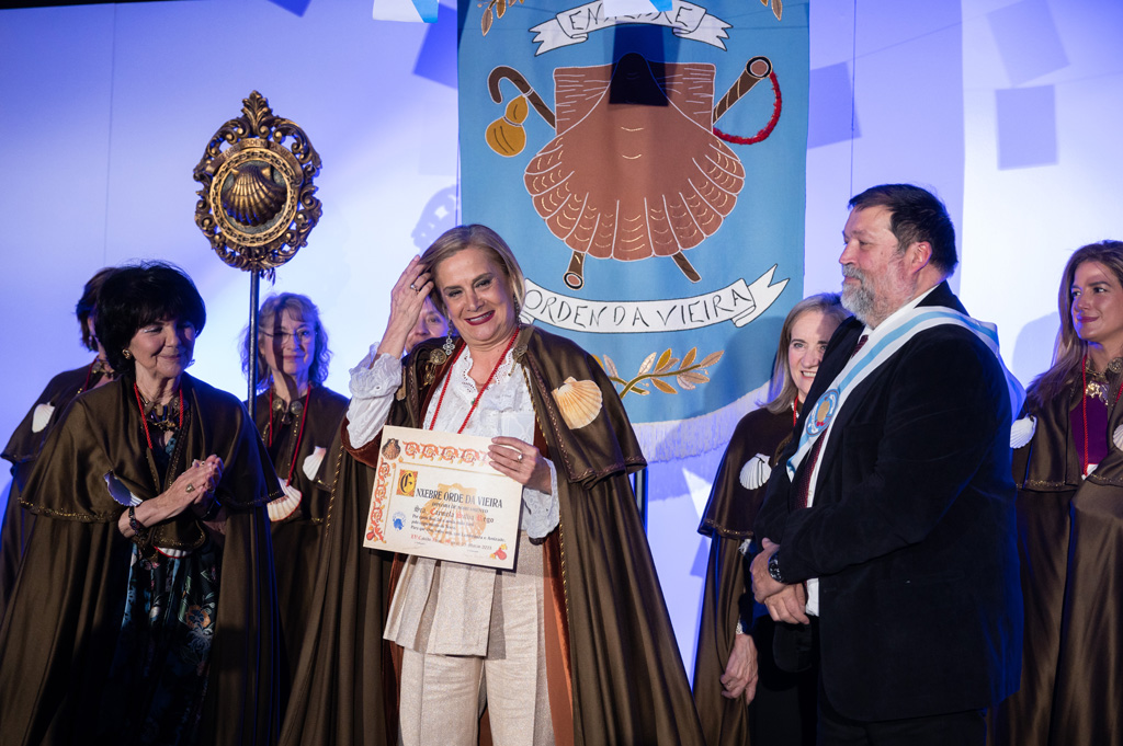 A presidenta da Deputación de Pontevedra, Carmela Silva, vén de ser investida este sábado en Madrid nova confrade da Enxebre Orde da Vieira, no transcurso do 55 Capítulo Xeral da entidade, sesión na que tamén se entregaron as distincións anuais que concede este colectivo. Carmela Silva ingresou na orde xunto a outros e outras dez confrades, sendo apadriñada polo ex ministro de Xustiza, Francisco Caamaño, quen recibiu o Madrigallego de Oro, un dos galardóns entregados durante a velada.