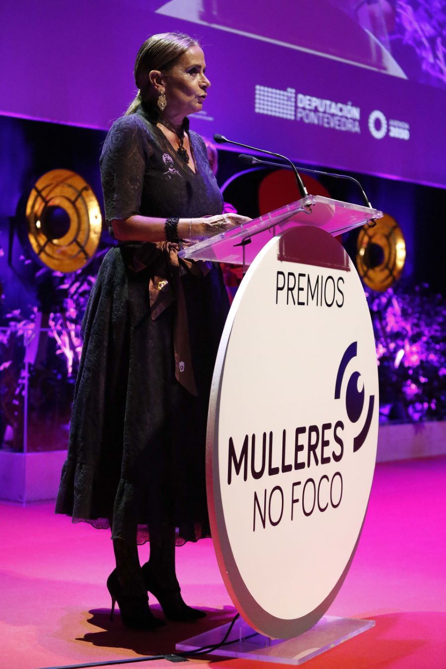 Nin Marilyn Monroe quixo perderse hoxe a gala da II edición dos premios Mulleres no Foco da Deputación e CIMA. Ao máis puro estilo cinematográfico, o auditorio de Afundación en Pontevedra engalanouse coa tradicional alfombra vermella, luminarias vintage ao estilo dos primeiros tempos do cinema, e encheu o seu ambiente coa música das mellores películas para albergar este evento que ateigou o patio de butacas, con case 500 persoas de toda Galicia. Todo para recoñecer o talento e a traxectoria das tres galardoadas deste ano, Chelo Loureiro, Paula Cons, e Lucía Catoira, así como das restantes 14 nominadas. Representantes do sector audiovisual e dos ámbitos da cultura, da política, da igualdade, medios de comunicación e da empresa déronse cita nesta gala, na que brillou a música de Sés e que tivo tamén carácter reivindicativo coas intervencións de Carmela Silva e da realizadora Inés París , da Asociación de Mulleres Cineastas CIMA. "Esta gala -subliñou a presidenta provincial- é de recoñecemento ao talento das mulleres do audiovisual. Pero e moito máis; é un acto de amor á cultura e á igualdade, os dous conceptos que maior poder teñen de transformación cara a unha sociedade máis xusta, máis digna e máis decente".