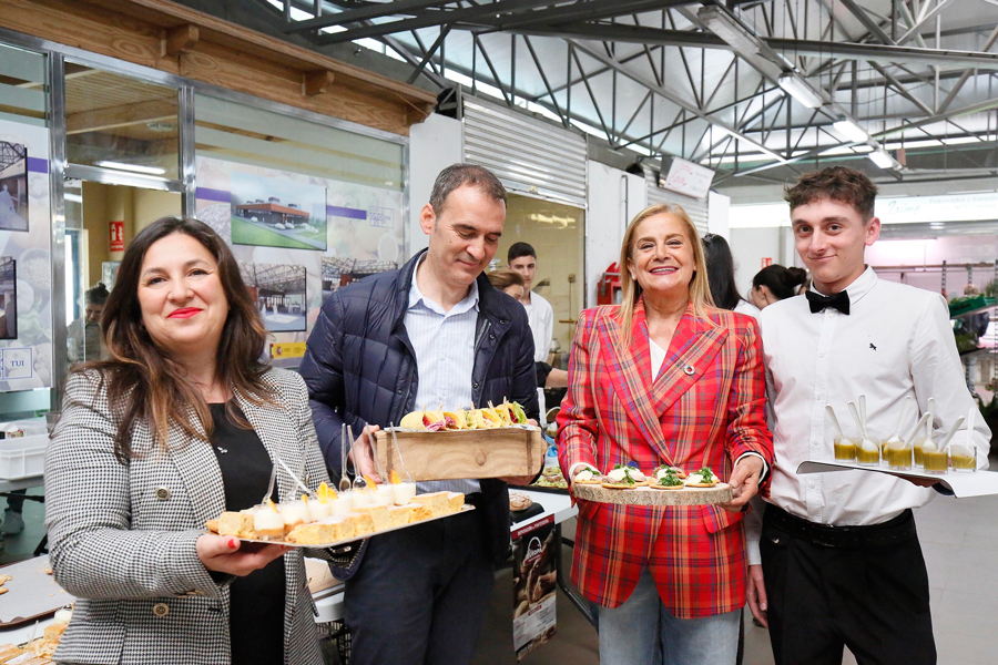 “Queremos poñer en valor o que nos une en Europa, que é o patrimonio inmaterial dos mercados, da gastronomía e dese produto de excelencia que temos na provincia de Pontevedra e na localidade de Tui”, asegurou Carmela Silva, que invitou á veciñanza a desfrutar dos petiscos do CIFP Manuel Antonio, “realizados con produtos de proximidade, porque o produto de Galicia é de excelencia e único no mundo”.  A edición deste ano do programa está ligada á campaña de turismo da Deputación, “Orixe”, polo que fai unha homenaxe a gastronomía das avoas e das nais, para o que o alumnado do CIFP Manuel Antonio reinterpretou receitas tradicionais con técnicas do século XXI. Precisamente, a presidenta quixo poñer en valor o traballo deste centro “que é un orgullo para esta provincia e para toda Galicia, porque ten grandes premios e recoñecementos e un profesorado moi comprometido”. Neste sentido, a secretaria da escola, Beatriz Pol, recalcou que este tipo de programas “son unha gran oportunidades para sacar aos alumnos e alumnas do centro, facer algo diferente e amosar á xente o que estamos a facer”.