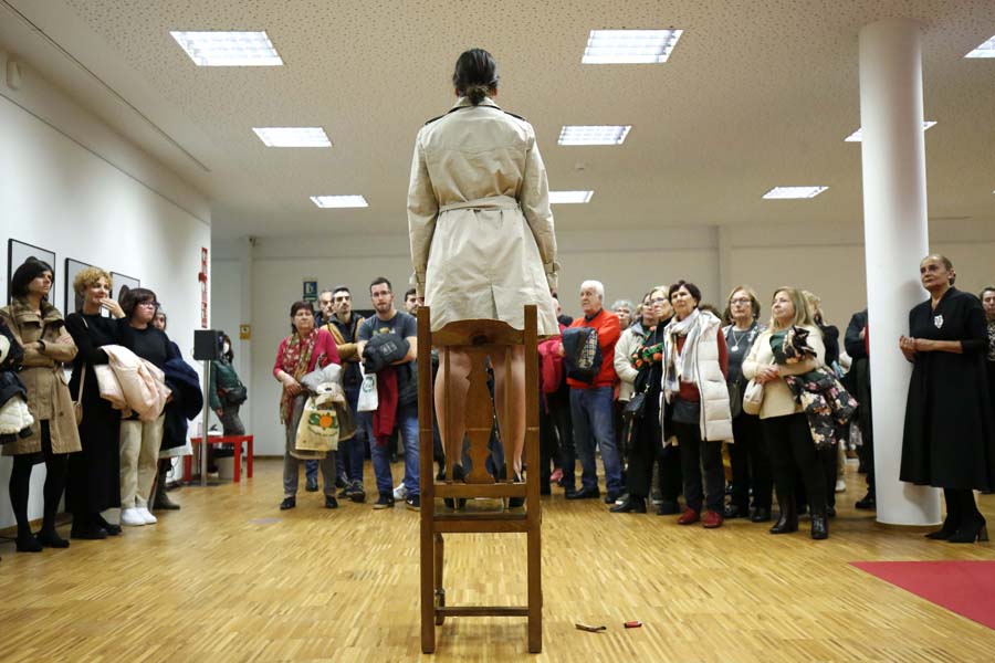 No acto de inauguración da mostra, comisariada por Paula Cabaleiro, a artista Constance Hurlé protagonizou a performance “Vísceras poéticas”, coa que quixo facer un percorrido “polas vísceras do que para min implica a palabra muller e ser muller”. A creadora traballou a expresión xestual con posicións absurdas como referencia ao tratamento das mulleres nas revistas de moda e tamén co imaxinario da bruxería, para terminar cunha acción de body painting no seu corpo con pintura vermella. Parte desa pintura quedou plasmada nun plástico que agora forma parte da exposición, e que amosa a frase: “Podo ser libre pola miña propia vontade. En min atópase as sementes da miña vida futura”.