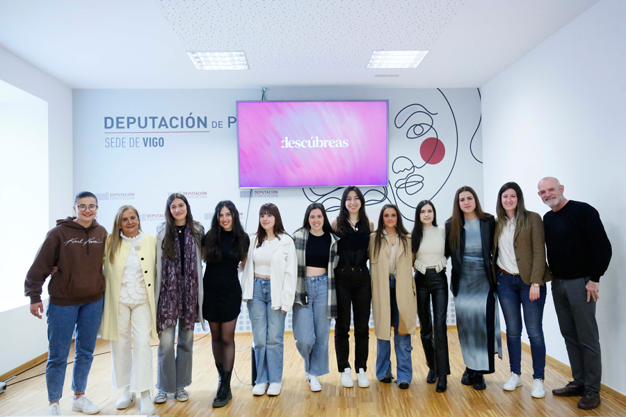 Cunha sesión grupal de mentoría que abordou a industria musical e a imaxe persoal e artística, as oito mozas participantes da terceira edición do programa “Descúbreas”, promovido pola Deputación e Regalamúsica, iniciaron esta fin de semana o proceso para impulsar as súas carreiras profesionais, que culminará coa gravación de cadanseu tema e videoclip para lanzar nas principais plataformas de streaming e venda en liña. A sede da institución provincial en Vigo acolleu esta xornada impartida pola deseñadora Andy González e o equipo de “Descúbreas”, e na que a presidenta provincial, Carmela Silva, animou ás mozas seleccionadas a desfrutar ao máximo desta experiencia formativa e de asesoramento “que vai marcar de xeito moi importante os seus primeiros pasos na industria musical”.