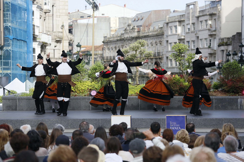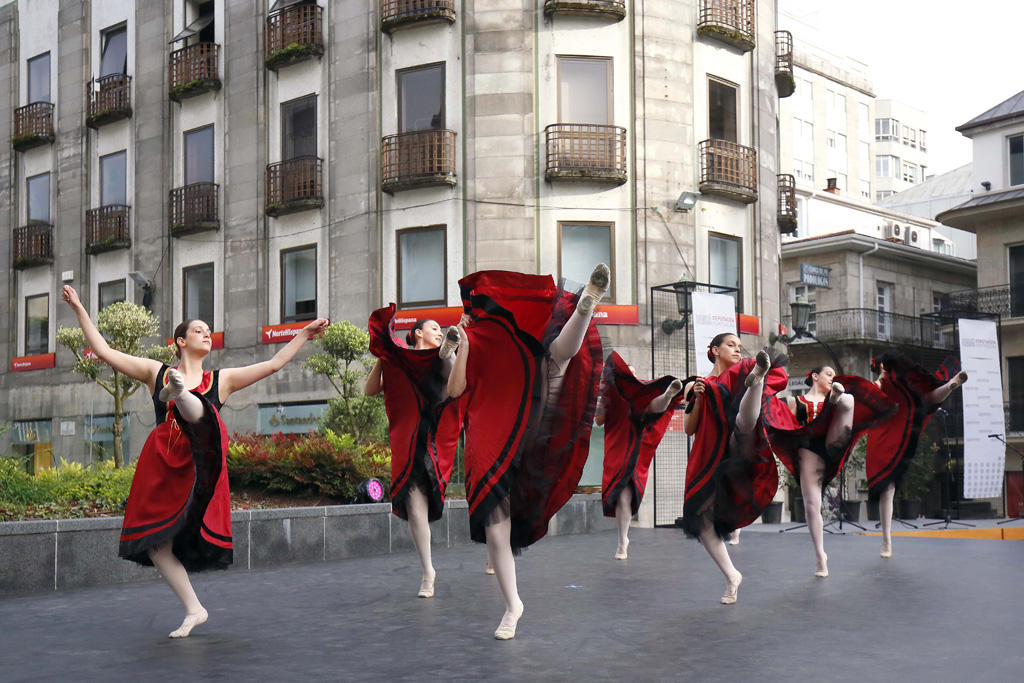 Unha ateigada Porta do Sol moveuse esta tarde ao ritmo dos pasos da nova danza galega no espectáculo co que a Deputación anticipou este venres en Vigo a celebración do Día Internacional da Danza, que se conmemora cada 29 de abril. Na cita, á que asistiron o alcalde de Vigo, Abel Caballero e a presidenta provincial, Carmela Silva, o alumnado do Ballet Folclórico Galego e da Escola de Danza Maite Quiñones ofreceu un repertorio que fusionou tradición e danza contemporánea e no que estivo moi presente o legado de José Manuel Rey de Viana, quen tivo un papel fundamental na conservación e na difusión do folclore tradicional galego e a quen a institución provincial quixo render homenaxe ao cumprirse o centenario do seu nacemento. A coreógrafa Maite Quiñones deu lectura ao manifesto elaborado por ambas agrupacións, no que destacaron que Rey de Viana “soubo inculcarnos o amor á nosa cultura, ás nosas tradicións e, sobre todo, o amor á nosa terra”.