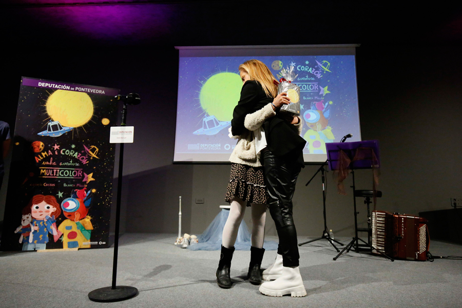 Foi unha marabillosa “viaxe de fantasía”, de grandes emocións e, sobre todo, de moitísimo “talento”. O escenario, o salón de actos do MARCO de Vigo; as protagonistas: a alumna do CEIP Virxe do Rocío Iria Portabales, a escritora Ledicia Costas, e a presidenta provincial, Carmela Silva. E o pano elevouse para unha celebración anticipada do Día Mundial do Teatro cunha proposta da Deputación chea de sorpresas que conxugou “toda unha singladura” ao redor do mundo da cultura. En primeiro lugar, a presentación do libro Alma e Corazón, unha aventura multicolor, da escritora Ledicia Costas e ilustrado por Blanca Millán, inspirado no xoguete Talento, co que a nena Iria Portabales gañou o concurso creativo de xoguetes non sexistas promovido pola institución provincial. Máis de cen alumnas e alumnos deste centro vigués arrouparon hoxe á súa compañeira nun periplo que se pechou co espectáculo “Asdomare”, con Vero Rilo e o acordeonista Santi Cribeiro. “Hoxe é un día para celebrar a cultura -destacou Carmela Silva- que é fundamental, porque temos que vivir e educarnos con ela”.