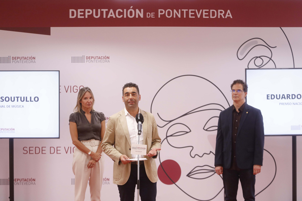 O presidente da Deputación de Pontevedra, Luis López, recibiu esta tarde de martes na sede da Deputación en Vigo o compositor Eduardo Soutullo. O músico vigués recibiu o Premio Nacional de Música, o galardón máis prestixioso no eido musical, que entrega cada ano o Ministerio de Cultura.