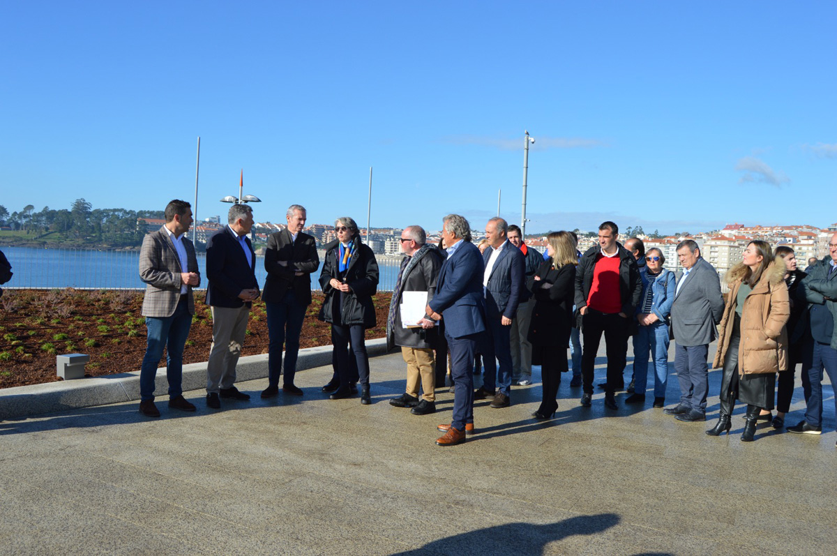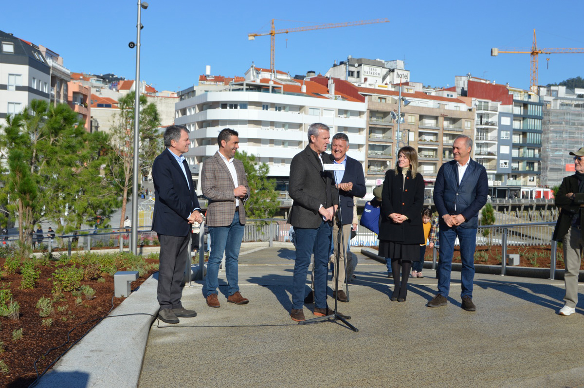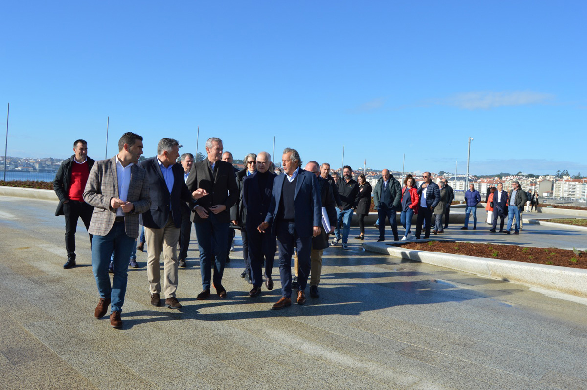 O presidente da Deputación de Pontevedra, Luis López, visitou este sábado a praza dos Barcos de Sanxenxo acompañado polo presidente da Xunta, Alfonso Rueda, e o alcalde de Sanxenxo, Telmo Martín. O motivo desta visita foi percorrer as obras e escoitar as explicacións dos responsables da redacción do proxecto “Batea en terra”, así como comprobar o remate dos traballos desta primeira fase do plan, que inclúe a construción dunha rampla axardinada no centro neurálxico da capital turística das Rías Baixas.
