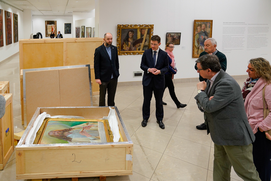 Como peche á visita da delegación pontevedresa ao Museo realizouse un percorrido guiado pola mostra que acolle 24 obras do autor Jacka Malczewskiego provenientes de Lwow, en Ucrania, co fin de resgardalas da guerra e evitar a súa destrución ou roubo.