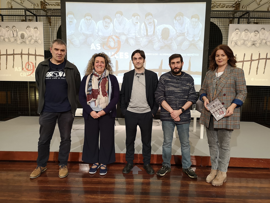 A banda deseñada (BD) que recolle a historia dos nove miñoráns asasinados polo franquismo na Bombardeira (Baiona) xa está dispoñible en papel. O libro da novela gráfica ‘As 9 cruces’ impulsada polo departamento de Memoria Histórica da Deputación de Pontevedra e realizada polo Garaxe Hermético –que xa fora visualizada e descargada na web e nas redes sociais preto de 31.000 veces durante súa difusión por entregas a finais do ano pasado- foi presentado hoxe no Salón de Plenos do Pazo Provincial cunha grande acollida de público, e dende a semana próxima será repartido nos centros de ensino secundario da provincia e as bibliotecas e centros de lectura municipais, ademais de poder recollerse de balde nas dependencias do Arquivo provincial ata esgotar exemplares.