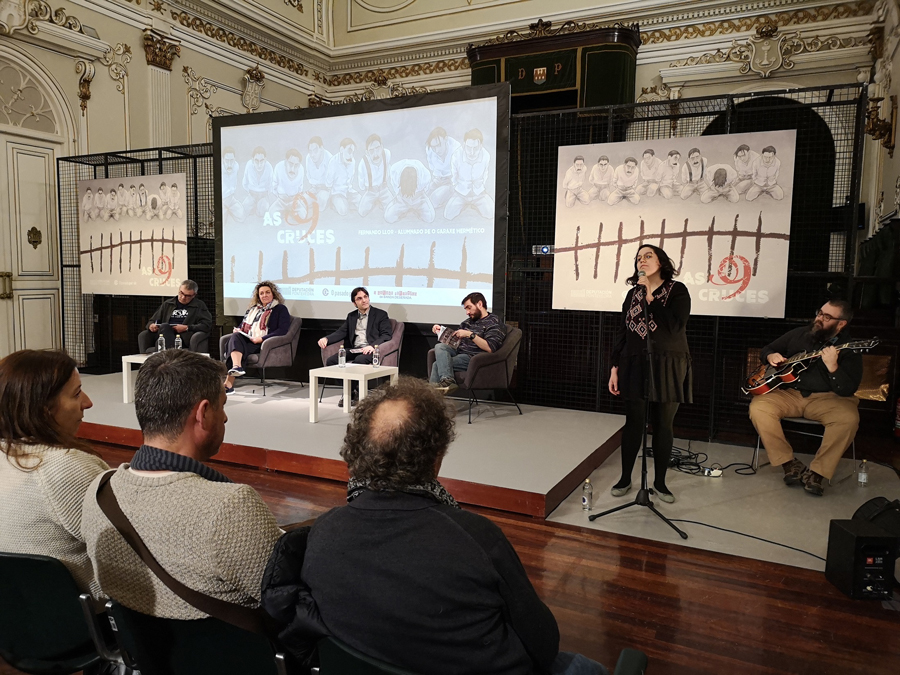A presentación contou coa presenza da deputada de Memoria Histórica María Ortega, Xosé Lois Vilar en representación do Instituto de Estudos Miñoráns (IEM), o coordinador da peza e responsable da escola O Garaxe Hermético Kiko Da Silva, o guionista Fernando Llor, e Alba María, responsable dos momentos musicais da xornada.