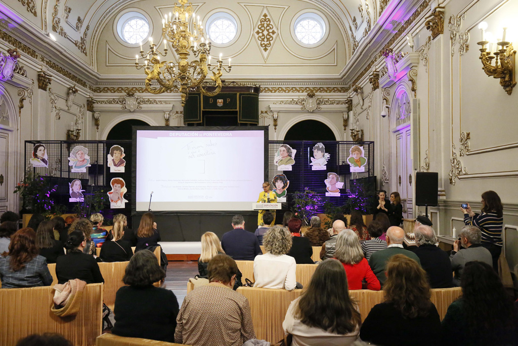 Os asasinatos machistas, o matrimonio forzoso, as violacións, o acoso, o aumento do machismo entre as novas xeracións, as violencias sufridas polas mulleres galegas durante a Idade Media… Nada escapa da ollada das escritoras asinantes do Manifesto de Soutomaior, por especialmente duro que sexa ou por difícil que poida ser tratalo desde unha perspectiva literaria. A Deputación de Pontevedra vén de presentar esta tarde no Salón de Plenos do Pazo provincial o libro “Ti non sabes o que é ser escritora”, composto por textos orixinais e inéditos de Isabel Blanco, Silvia Cernadas, Mercedes Corbillón, Ledicia Costas, Inma López Silva, Silvia Penas, Arantza Portabales, Anna R. Figueiredo, Elvira Ribeiro e Rexina Vega. Cada unha das obras, nove de ficción e unha investigación histórica, están acompañadas de ilustracións de 10 creadoras ‘aliadas’ do Manifesto: Luz Beloso, Celeste Garrido, Andrea Jano, María Lapido, Lara Lars, Andrea López, Blanca Millán, Gloria Pavía, Alba Troiteiro e Sofía Venzel. No acto de presentación da publicación, que contou coa actuación da cantante Carolina Rubirosa acompañada do guitarrista Rafael Otero, a presidenta da Deputación remarcou que “as nosas historias merecen ser contadas, lidas e escoitadas”.