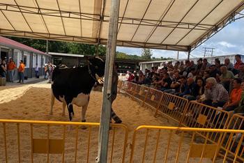 Éxito da primeira poxa pública de gando vacún da Finca Mouriscade que acaba de celebrarse nestas instalacións da Deputación de Pontevedra e na que participaron 22 empresas da provincia e doutros puntos de Galicia. Na poxa vendéronse unha vintena de vacas de raza frisoa que formaban parte da gandaría da Finca e contan cun gran valor comercial para continuar a súa vida produtiva nas explotacións lácteas. A poxa foi seguida por numeroso público, entre o que figuraba a rapazada que participou ao longo desta semana na primeira Escola de Iniciación de Futuros Gandeiros, organizada pola Federación Frisoa Galega en colaboración co Clube de Xóvenes Gandeiros, e que se clausurou tamén hoxe en Mouriscade.
