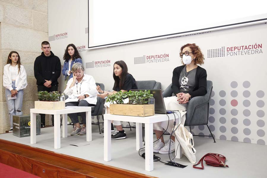 Anxos Rial Vidal e Conchi Díaz Candán, docentes de lingua e literatura galega do IES Sánchez Cantón de Pontevedra falaron do proxecto “Na súa memoria, na nosa memoria”, realizado neste curso 2021-2022 co alumnado de 4º da ESO, destinado a que o alumnado investigue sobre a memoria das mulleres da contorna de Pontevedra, como continuación do proxecto “Mulleres bravas á beira do Lérez”, realizada o ano pasado sobre mulleres singulares da Boa Vila. A iniciativa aúna as actividades Comité de Igualdade, de Normalización Lingüística, os Clubs de Lectura e o Departamento de Lingua e Literatura.