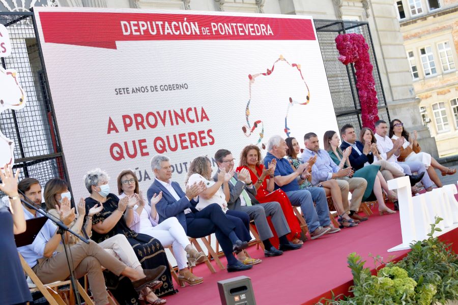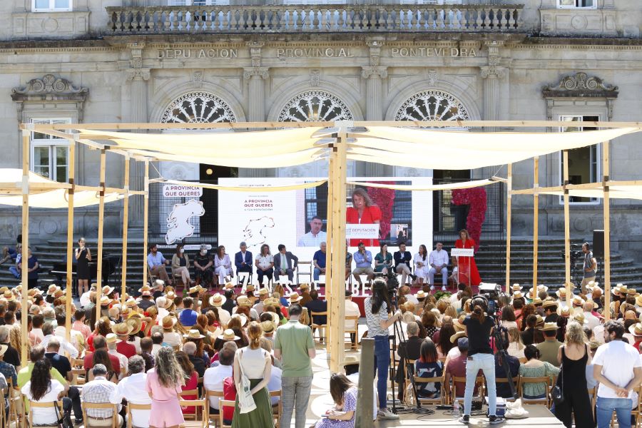 A explanada de Montero Ríos, en Pontevedra, foi hoxe o escenario do tradicional acto de dación de contas do goberno da Deputación, co que cada ano se presenta ante a sociedade da provincia para dar coñecemento do uso dos recursos públicos cos que se está a acadar, en palabras da presidenta Carmela Silva, "unha transformación intelixente da provincia que, honestamente, cremos que entre todos e todas estamos a conseguila". O multitudinario evento, que contou coa actuación do pianista Alejo Amoedo e da mezzosporano Nuria Lorenzo, concitou destacadas presenzas como a dos alcaldes de Vigo e Pontevedra, Abel Caballero e Miguel Anxo Fernández Lores, así como de Vilagarcía e Redondela, Alberto Varela e Digna Rivas, amais doutros 35 concellos, representando a máis de 600.000 habitantes da provincia. Tamén institucións civís e militares, e asociacións e entidades do tecido económico, empresarial, social, cultural, informativo, turístico ou deportivo do territorio.