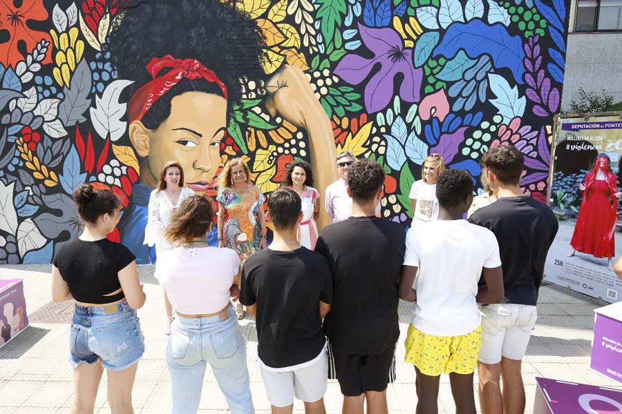 A presidenta da Deputación de Pontevedra, Carmela Silva, presentou no centro Príncipe Felipe o mural “Berro” que realizou a artista Rakele Cavallo na fachada principal do edificio do Centro Escola/Fogar no marco do programa “Mulleres en Acción. Violencia Zero” para denunciar as violencias que sofren as mulleres polo feito de ser mulleres. A artista estivo acompañada na súa elaboración por rapazas e rapaces do centro que asistiron a un obradoiro creativo no que compartiron esta experiencia única para transformar o muro do centro nun verdadeiro patrimonio cultural. No acto de inauguración a presidenta estivo acompañada pola deputada delegada de Príncipe Felipe, Noemí Outeda, así como o seu director, Manuel Cendón, profesorado e alumnado do centro.