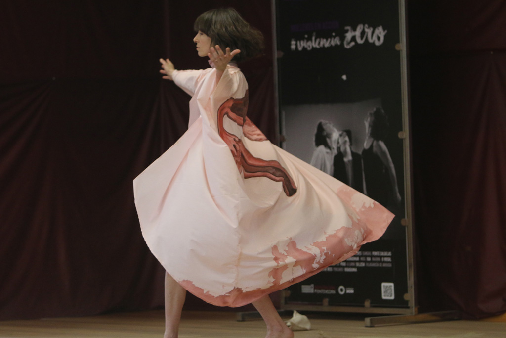 Mulleres en Acción. Violencia Zero” está a recuperar nesta edición a precursoras do programa, artistas que nestes anos fixeron emerxer e crecer esta iniciativa da Deputación, xerando alianzas entre elas ou con novas colaboradoras, ideando xuntas pezas inéditas. En Nigrán, Neves Seara e Elsa Pereira, traballaron para realizar conxuntamente a peza performativa “Flamma (Maltratos nos procesos das (non) maternidades)”, que busca poñer o foco nas violencias machistas que sofren os corpos das mulleres, que incluso nos seus procesos máis íntimos son xulgados, maltratados e agredidos. A acción consistiu nunha conxugación de actuación en vivo que emulou a parte corpórea, visceral e sensitiva violentada polos tratos xinecolóxicos e procesos de (non)maternidade; e a danza, que representou a parte emocional e o subconsciente.