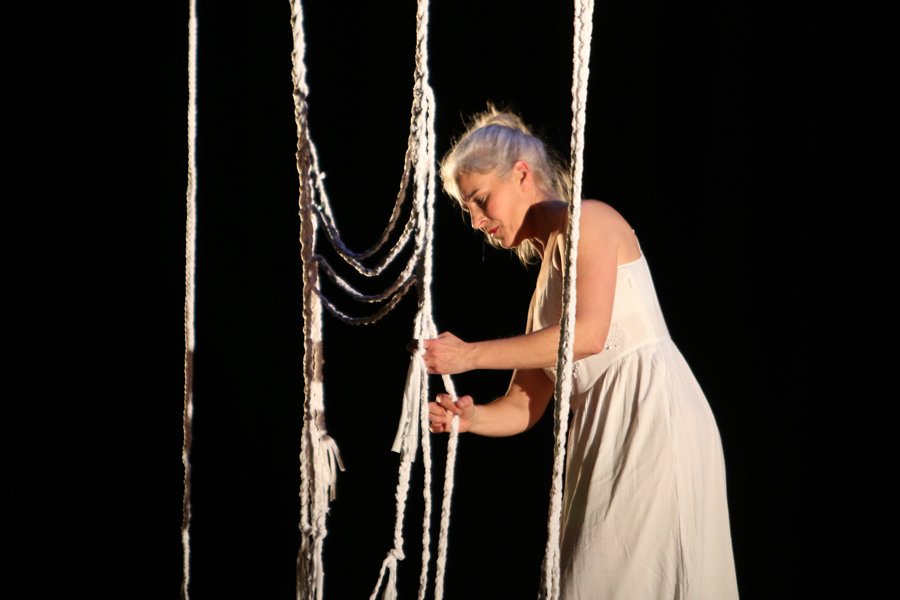 “Mulleres en Acción. Violencia Zero” está a recuperar nesta edición a precursoras do programa, artistas que nestes anos fixeron emerxer e crecer esta iniciativa da Deputación, xerando alianzas entre elas ou con novas colaboradoras, ideando xuntas pezas inéditas. No Grove, Xela Marx e Maya Estarque, traballaron para realizar conxuntamente a peza “A tecedora do tempo”, unha acción poética na que ámbalas dúas artistas encarnaron a complexidade da personaxe de Penélope na Odisea de Homero, unha muller que, a pesares de ter voz nun dos primeiros textos clásicos da cultura occidental e ter soños, desexos e dúbidas, ten unha vida suxeita á existencia do seu marido Ulises, que leva anos fora da súa casa, e á monotonía do seu día.