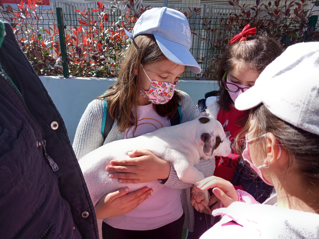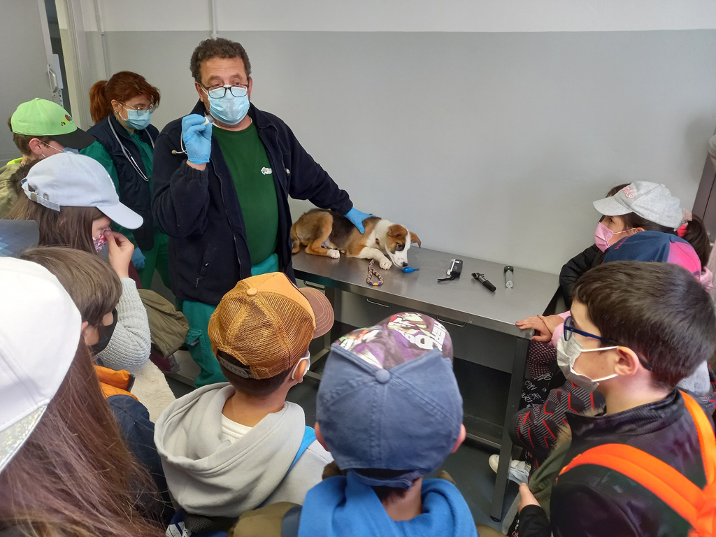 Amais, os e as escolares visitaron a sala de quirófano e coñeceron os equipos de radiodiagnóstico de que dispón o centro, pero sen dúbida a súa parte favorita chegou no momento en que puideron acariciar a varios animais no “patio de recreo” onde cada xornada pasean co personal do CAAN. Nel desfixéronse en abrazos con catro cachorros que apareceran fai tres meses en Pontecesures nun colector e que xa están plenamente recuperados. De feito, un deles, “Yogui”, atopou un novo fogar ao día seguinte da visita.