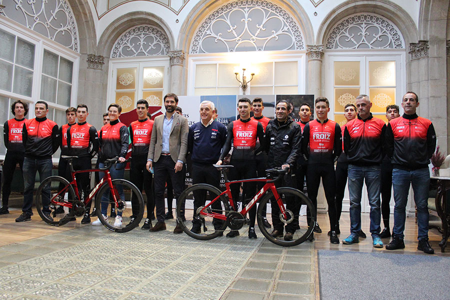 O grupo ciclista Supermercados Froiz pasou pola Deputación, onde foi recibido polo deputado de Deportes Gorka Gómez.