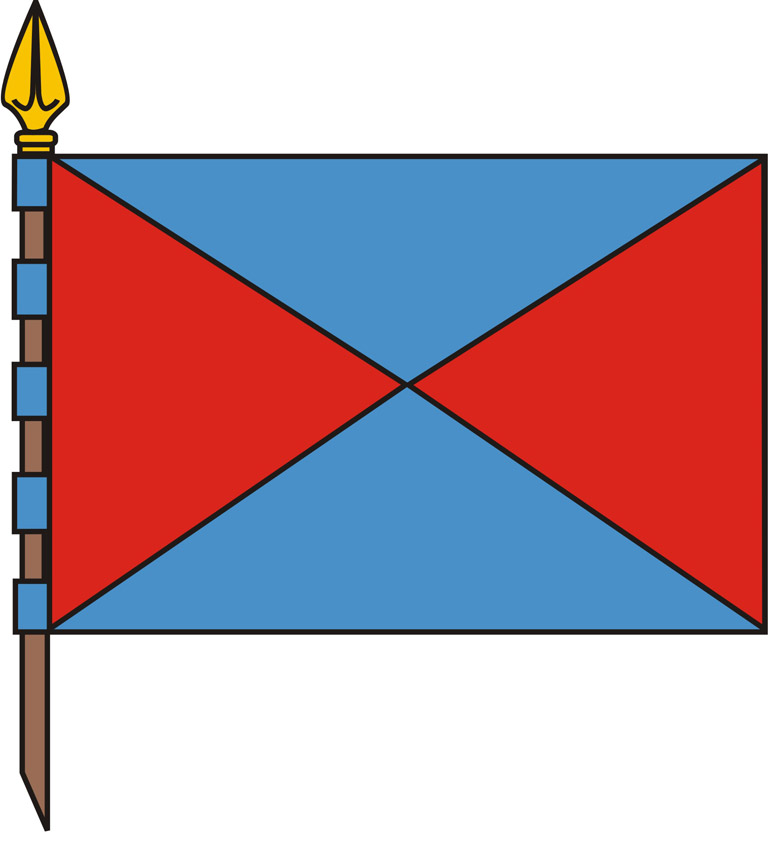 Rectangular, con dos franjas de color azul celeste onduladas y paralelas en su parte central de 1/3 del ancho, dejando a la vista dos cúspides y tres concavidades en su parte superior y tres cúspides y dos concavidades en la inferior. Rectangular con dos franjas de color azul celeste onduladas y paralelas. Superpuesto llevará el escudo de la villa colocado a un tercio de su longitud, partiendo del asta, ocupando la franja blanca ondulada de arriba a abajo.