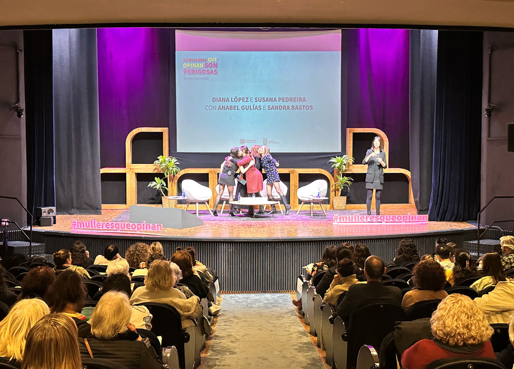 Despois da inauguración deste foro, esta mañá foi a quenda de Carolina Sertal e Carmen G. Magdaleno, gañadoras do I Premio de Opinión #MulleresQueOpinan, e de Lula Gómez, guionista, podcaster e realizadora audiovisual. Pola tarde subirán ao escenario do Teatro Principal Mercedes Corbillón, de Diario de Pontevedra e La Voz de Galicia; Jazmín Abuín, xornalista, cómica e actriz; Diana Oliver, xornalista especializada en maternidade, infancia e saúde; e Lucía Méndez, de El Mundo.