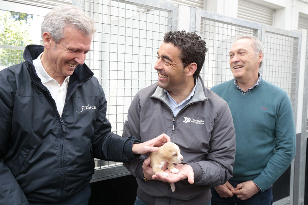 O presidente da Deputación de Pontevedra, Luis López, definiu o Centro de Acollida e Protección de Animais (CAAN), situado na Armenteira e dependente do organismo provincial, como un centro de referencia en benestar animal, no que conviven actualmente 288 cans sen fogar e no que se xestionaron 170 adopcións no que vai de ano. O mandatario provincial visitou este xoves as instalacións do refuxio acompañado polo presidente da Xunta de Galicia, Alfonso Rueda, para coñecer o funcionamento do centro e os servizos que lles prestan tanto aos animais coma os de cooperación cos 52 concellos da provincia cos que colabora á hora de recoller animais sen fogar, abandonados ou que provocan algún tipo de problema de convivencia.