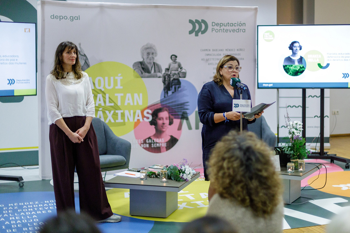 A Sede de Vigo da Deputación de Pontevedra acolleu hoxe un novo faladoiro do programa provincial Aquí faltan páxinas. Neste caso, a protagonista foi a pianista, educadora, defensora da paz e dos dereitos das mulleres Urania Mella unha muller “exemplar, adiantada ao seu tempo, defensora dos dereitos das mulleres e da paz e cun gran compromiso político, social e educativo”, como a definiu a deputada de Igualdade, Sandra Bastos, durante o acto. O faladoiro correu a cargo de Iria Presa, filóloga, investigadora e promotora cultural, estudosa tanto da vida de Urania Mella como do seu pai, Ricardo Mella, que estivo presente desde México, onde reside. Ademais, durante o acto a artista Silvia Penas levou a cabo unha performance histórico-poética.