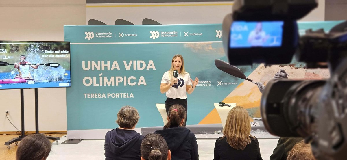 A Deputación de Pontevedra acolleu este mércores na súa sede de Vigo unha conferencia sobre valores deportivos da man da olímpica Teresa Portela. A actividade foi presentada pola vicepresidenta provincial Luisa Sánchez e forma parte de Unha vida olímpica, unha alianza establecida entre a institución provincial e a olímpica pontevedresa para levar o nome das Rías Baixas por todo o mundo.
