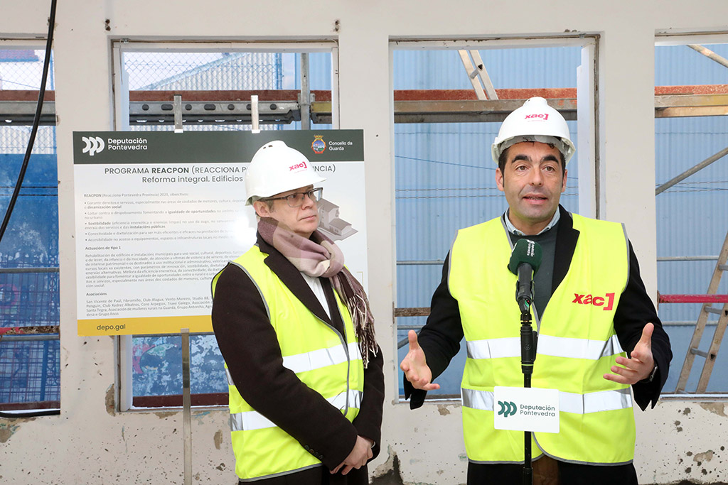 O presidente da Deputación de Pontevedra, Luis López, visitou este mércores as obras de rehabilitación reforma integral do Bloque I dos Edificios Sinde de A Guarda para adecualos para uso social. Unha intervención integral que é froito da colaboración entre as administracións provincial e municipal a través do programa PON2030 que supón o investimento de máis de un millón de euros, financiados integramente pola Deputación. Acompañado polo alcalde e deputado responsable de Cooperación Transfronteiriza, Roberto Carrero; o mandatario provincial percorreu o inmoble que, ao remate das obras, seguirá funcionando como punto de encontro para distintas asociacións locais pero con mellores equipamentos e maior comodidade. “Non hai moito tempo estabamos asinando o alcalde e máis eu o convenio de saída para poder executar este proxecto. Hoxe estamos nesta visita que é unha mostra do que facemos na Deputación, que é cumprir coa palabra. Cumprimos cando se executa unha obra que asinamos, cando colaboramos co Concello da Guarda para executar un proxecto destas características e cando poñemos a disposición da veciñanza instalacións e servizos para atender as súas necesidades”, afirmou o titular do goberno da Deputación.