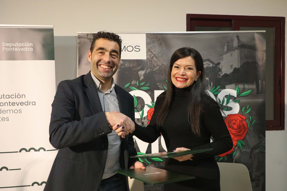 O presidente da Deputación de Pontevedra, Luis López, destaca o 1,2 millóns de euros destinados á mellora da seguridade viaria e da mobilidade peonil na estrada provincial EP-2601, no treito entre os núcleos de Mos e Puxeiros, como unha nova mostra do compromiso do goberno provincial coa modernización da rede viaria e da cooperación cos concellos. Acompañado pola deputada de Infraestruturas, Isabel Couselo, o mandatario provincial vén de asinar este xoves coa alcaldesa de Mos, Nidia Arévalo, o convenio para a construción dunha senda peonil nun treito de 1.350 metros desta estrada nun proxecto no que a Deputación achega o 80 % do orzamento total. “Estamos diante dunha nova mostra de que a Deputación cumpre coas súas competencias en mantemento e mellora de estradas, co seu deber de cooperar cos concellos; e coa súa vocación de modernizar as infraestruturas”, afirmou o presidente Luis López antes de asinar o acordo.