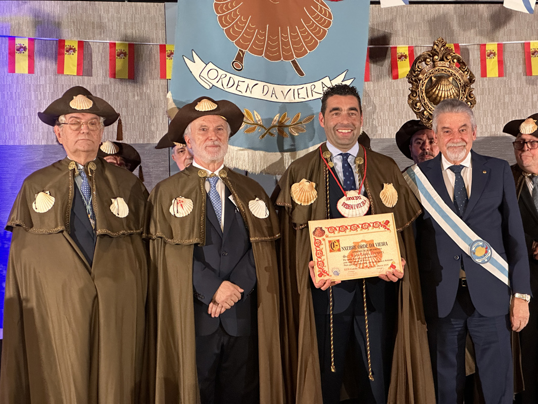 Coa súa participación nesta cerimonia, que ten o obxectivo de potenciar a galeguidade e recoñecer o labor a prol da cultura galega que desenvolven profesionais e entidades de todos os ámbitos dentro e fóra das fronteiras de Galicia, Luis López amosou o seu orgullo por ser nomeado embaixador desta orde e comprometeuse a seguir divulgando as bondades dun produto, a vieira, que é símbolo da gastronomía da provincia e de Galicia.
