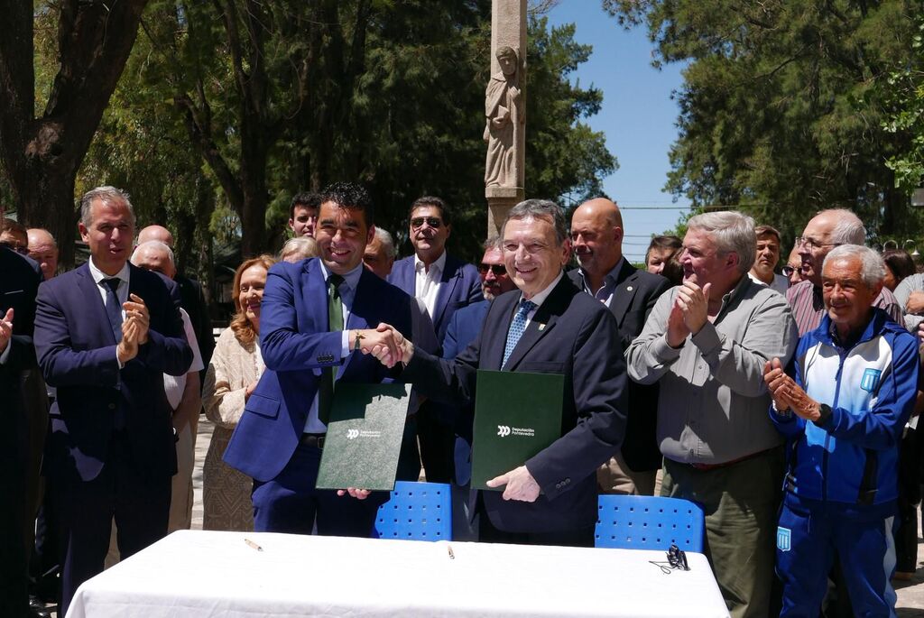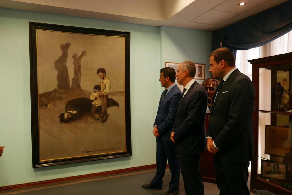 O presidente da Deputación de Pontevedra, Luis López, asina a cesión temporal do cadro de Castelao “A derradeira lección do mestre” para expoñelo por primeira vez na historia no Museo de Pontevedra. Fíxoo no Campo Galicia de Bos Aires no marco dun encontro de confraternidade organizado pola Deputación e o Centro Galicia de Bos Aires no que participaron centos de persoas que forman parte dos distintos colectivos de galegos residentes na capital arxentina. Acompañado polo vicepresidente e responsable do Museo provincial, do deputado de Cultura, Jorge Cubela e da directora do Museo, Ángeles Tilve; o presidente Luis López asinou con Jose María Alén Vila, o director de Centro Galicia de Bos Aires que é o titular desta obra de arte, o acordo para a cesión temporal desta pintura, que a levará no 2026 á provincia de Pontevedra por primeira vez.