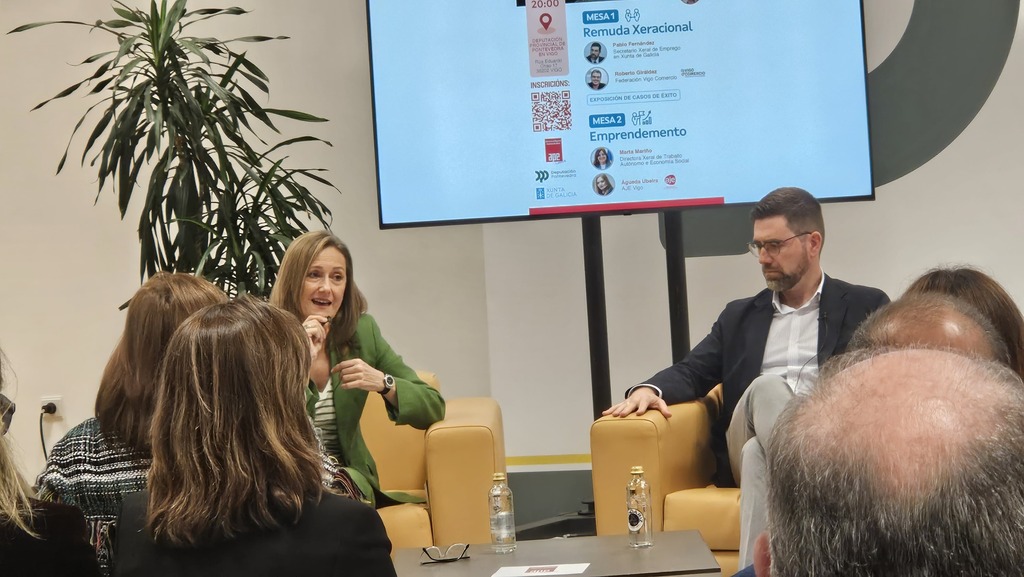A vicepresidenta da Deputación de Pontevedra, Luisa Sánchez, participou este martes na apertura da xornada organizada pola Asociación de Autónomos e Pequenas Empresas de Galicia (APE Galicia) dedicada ao relevo xeracional e o emprendemento. A vicepresidenta lembrou nesta xornada formativa, que se celebrou na sede de Vigo, que “Galicia é unha das rexións en España onde o peso das persoas autónomas fronte ao total de traballadoras se sitúa máis por enriba da media, cun 19% fronte ao 16%”. Neste eido, Luisa Sánchez chamou a “poñernos do lado das persoas que queren emprender para darlles todas as facilidades e, así, poidan cumprir os seus soños e facer realidade os seus proxectos”.