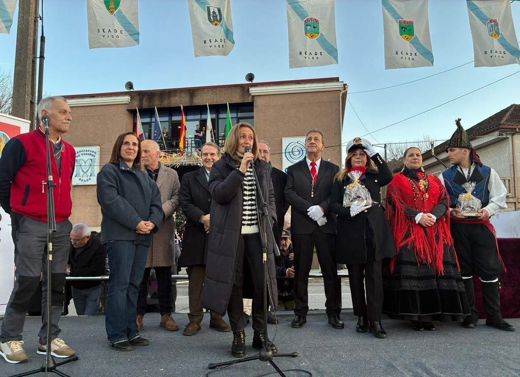 A vicepresidenta da Deputación de Pontevedra, Luisa Sánchez, asistiu este sábado ao IV Encontro de Rondallas de Beade, onde subliñou a importancia de preservar e promover as tradicións populares. Neste sentido, salientou o impulso que vén de recibir o programa Culturea, que contará cun orzamento de 1,2 millóns de euros no ano 2026. Trátase dun 50% máis que ao comezo do presente mandato. “Estamos a reafirmar o noso compromiso coa cultura da nosa terra e coa difusión e revitalización deste patrimonio musical único”, afirmou Luisa Sánchez durante o desfile que percorreu as rúas da parroquia. Ademais, recordou a destacada participación do organismo provincial na produción da película ‘Rondallas’, un filme que se puido ver este xoves en Vigo e que está a levantar unha grande expectación de cara á súa estrea en cines o próximo 1 de xaneiro.