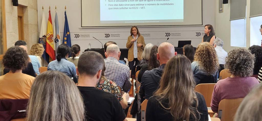 A vicepresidenta da Deputación de Pontevedra, Luisa Sánchez, acaba de reunirse co profesorado implicado no Erasmus +, a iniciativa coa que a institución provincial está a facilitar que mozas e mozos da provincia completen a súa formación no estranxeiro. “Queremos –subliñou a vicepresidenta no encontro no que participaron profesores dos 40 centros educativos que forman parte do consorcio creado pola Deputación para a xestión do Erasmus+ na provincia- axudar a que a nosa xuventude atope o seu camiño, impulsar que poidan realizar prácticas empresariais no estranxeiro para que gañen experiencia e soltura nos ámbitos nos que desenvolverán as súas carreiras profesionais”.
