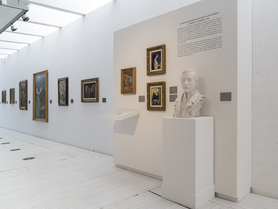 A xornada matinal rematou coa visita ás salas do museo nas que se exhiben ata final de ano tres óleos pintados por Antonio Palacios. Son dous pequenos retratos femininos, obras de xuventude que pertenceron ao seu grande amigo o caricaturista Sileno, e a primeira imaxe gráfica dunha das salas do Museo de Pontevedra no Edificio Castro Monteagudo, un óleo que pintou do natural o 28 de agosto de 1929, poucos días despois da súa inauguración. Xunto a eles móstranse cinco postais de Antonio Palacios dirixidas ao seu amigo Sileno. Completa o conxunto un busto do arquitecto feito en xeso por Javier de Benito e Rocío Guerrero.