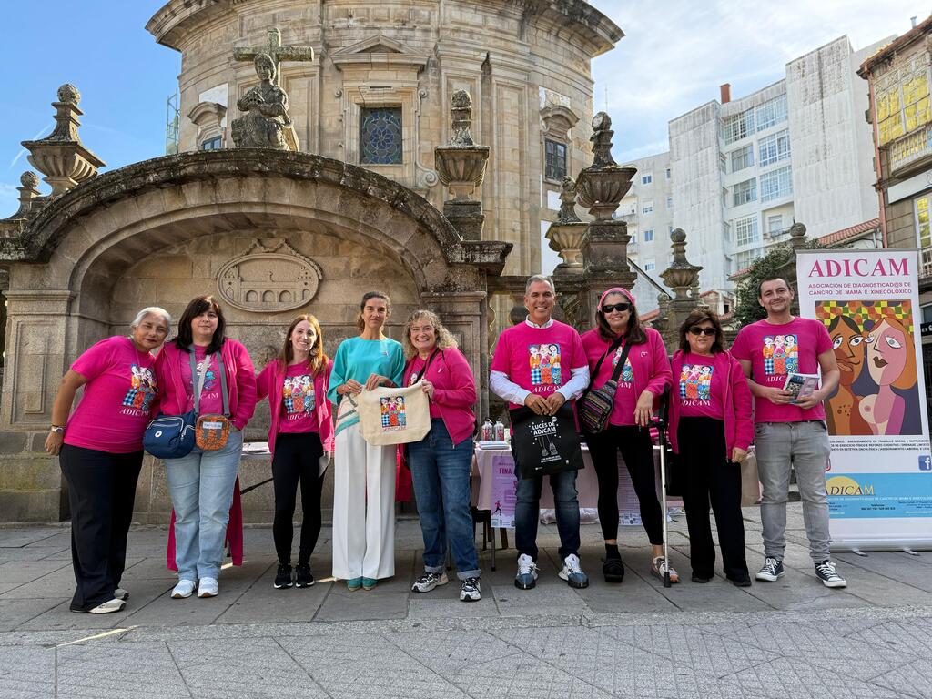 O vicepresidente da Deputación de Pontevedra, Rafa Domínguez, asistiu este mércores á mesa informativa instalada por ADICAM, a Asociación de Diagnosticadas de Cancro de Mama e Xinecolóxico, na Praza da Peregrina de Pontevedra co gallo do Día Internacional do Cancro de Mama que terá lugar o próximo día 19. O vicepresidente provincial puido informarse de primeira man das iniciativas impulsadas polo colectivo, como o programa “Seguimos camiñando en rosa”, que recibe habitualmente recursos da institución provincial na súa liña de axudas para actuacións no ámbito social.