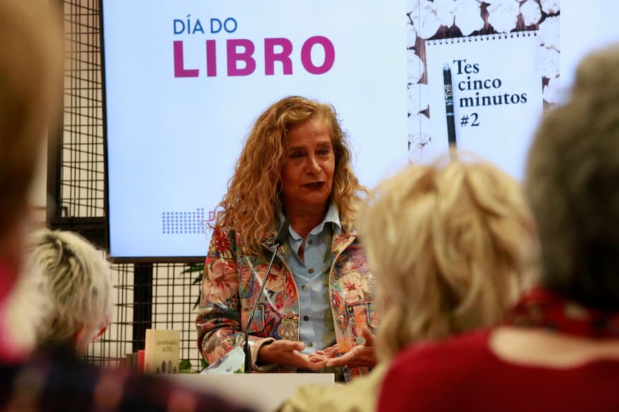 Como cada 23 de abril, a Deputación de Pontevedra celebrou hoxe o Día do Libro, "día que festexamos para compartir felicidade", dixo a presidenta Carmela Silva, e fíxoo por todo o alto coa presentación de "Tes cinco minutos #2", a escolma de textos que xurdiu no seo da segunda edición da Escola de Letras, iniciativa pioneira en Galicia e no Estado impulsada pola institución provincial e a Editorial Galaxia. A Deputación escolleu a Sala Rosalía da sede de Vigo para festexar esta data, lugar que xa no seu propio nome transmite cultura. A ela achegáronse a presidenta provincial, Carmela Silva, o director da Editorial Galaxia e da Escola de Letras, Francisco Castro, Inma López Silva, unha das docentes do curso, e escritoras como María Xosé Queizán , que recomendou ler o Quixote e definiu a lectura dun libro "como unha conversa, a relación mais intima que hai porque entre o libro e a persoa nunca se interpón ninguén, un acto moi erótico e moi feliz". Tamén asistiron Judith Rodríguez, Paula Dapena e Elena Casal, tres das deportistas da provincia de recoñecido nivel que tamén quixeron facer a súa aportación a esta celebración lendo os seus libros favoritos. O acto estivo amenizado pola actuación da cantautora Leticia Rey.