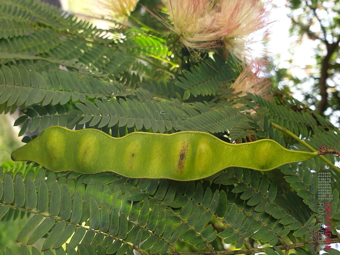 Froito: vaíñas alongadas e moi comprimidas ou aplanadas, de ata 20 cm de lonxitude. Maduran en outono e mantéñense durante moito tempo na árbore