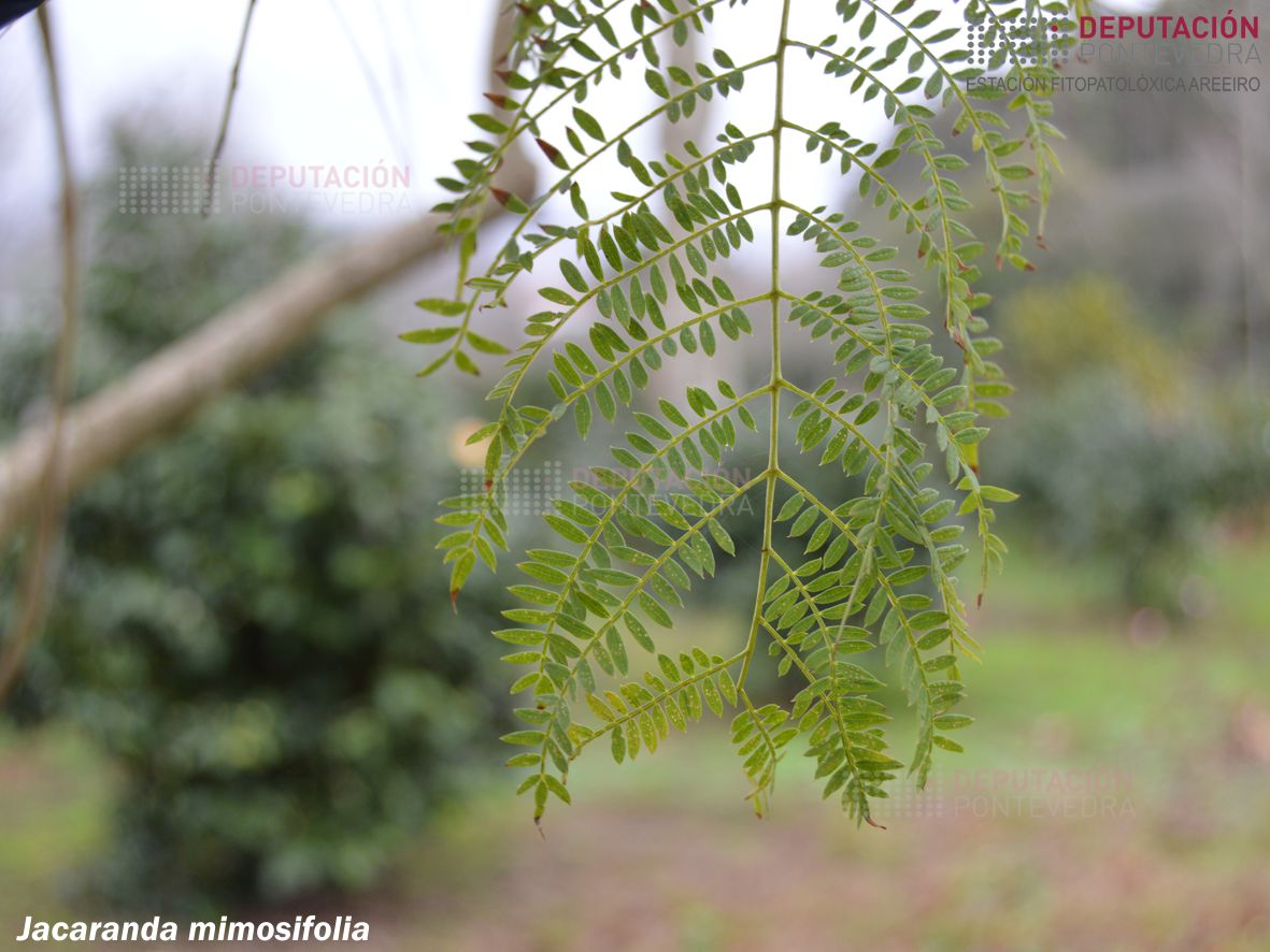 Follas: de cor verde clara, son compostas e bipinnadas.